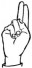 На ћирилици написано ЈЕЛИСАВЕТА АРКУЛА састоји се из 16 слова [?]. Исписано ћириличном једноручном азбуком за глувонеме: